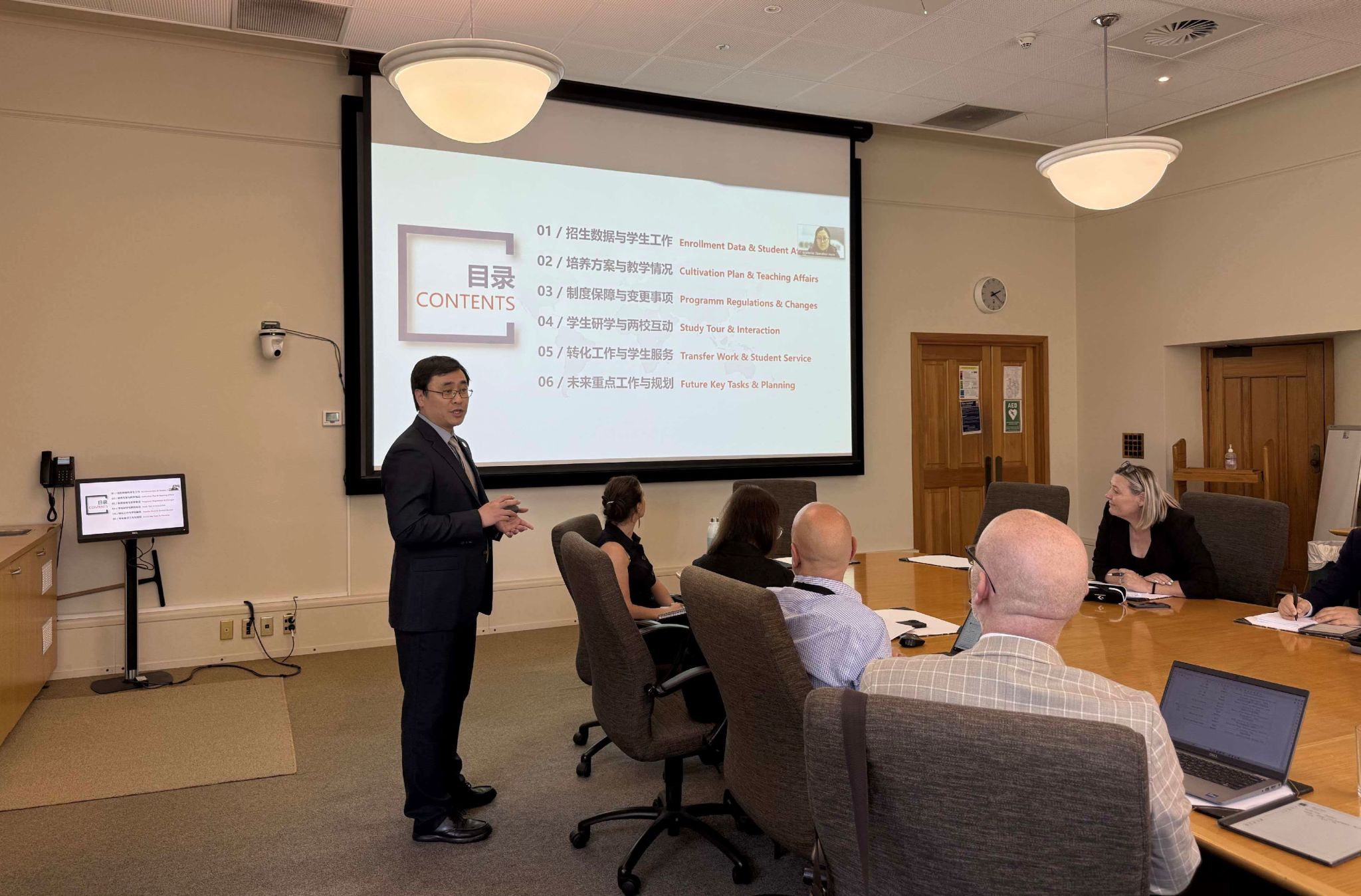 会议伊始,东北大学秦皇岛分校校长赵勇代表联合管理委员会致辞。他首先对会议的召开表示热烈祝贺,并向奥克兰大学及我校工作团队在过去一年中为数学与应用数学中外合作办学项目高质量运行所付出的辛勤努力表示感谢,并充分肯定双方现阶段取得的合作成果。随后,会议系统回顾了自第二次联合管理委员会会议以来双方设定的各项目标及其实施进展情况,并就进一步深化中外合作办学内涵建设、提升教育国际化水平等核心议题展开深入研讨。教务处处长、数学与统计学院院长刘超详细汇报了项目过去一年取得的显著成果,项目首届学生赴奥克兰大学前的准备工作进展,以及今年8月项目学生研学团在奥克兰大学的交流成果。