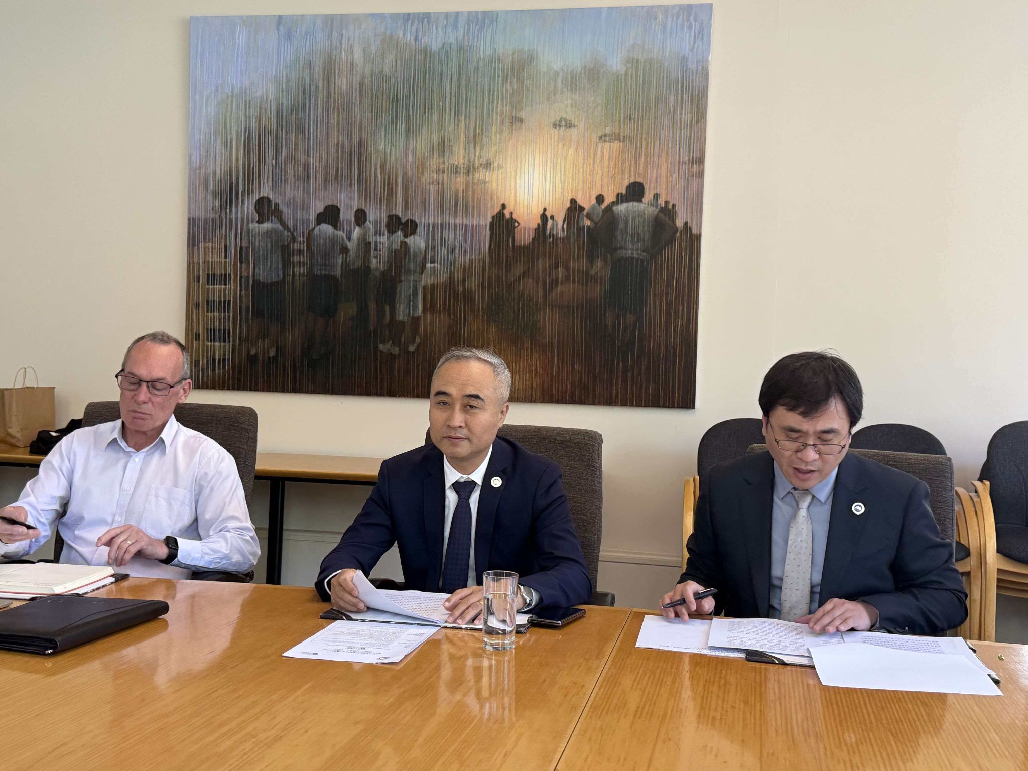 会议尾声,两校领导共同签署《东北大学与奥克兰大学数学与应用数学中外合作办学项目执行协议增编》,通过补充完善学生培养细则,夯实项目规范执行基础。赵勇在总结讲话中强调,此次会议进一步明确了项目未来的发展方向。展望未来,希望两校持续深化合作,为学生打造多元化学习路径与成长平台,切实提升学生就业质量及在奥克兰大学的深造率。同时,以合作办学为纽带,推动两校从专业协作拓展至科研合作等更广泛领域,共同谱写国际教育合作新篇章。